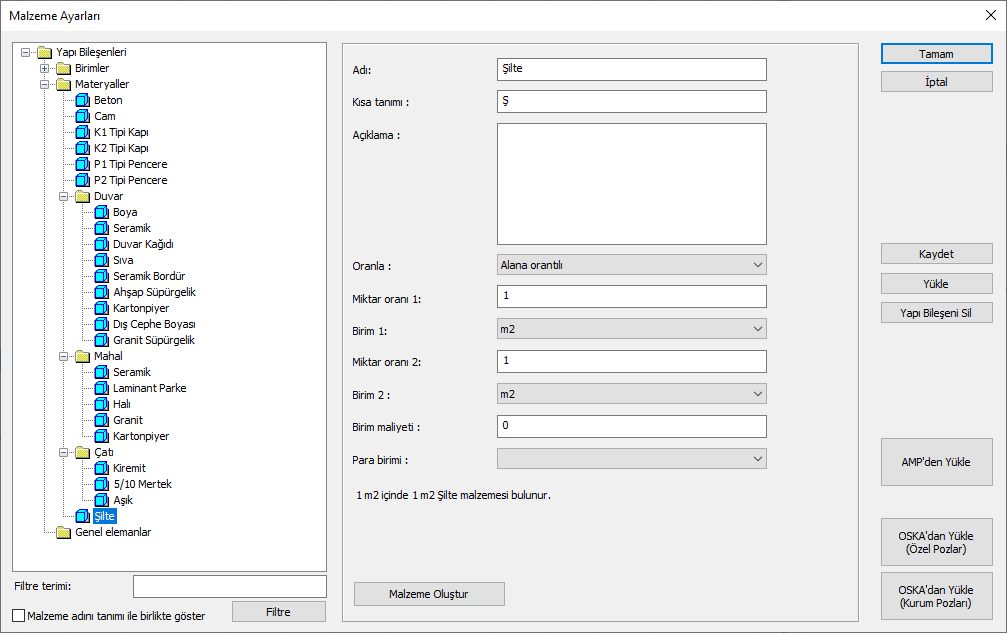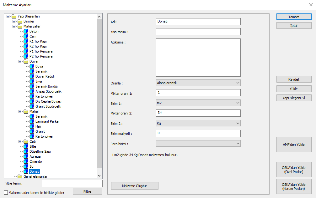 Kaydet butonuna tıkladığınızda yapı bileşenleri veritabanı güncellenecek, materyaliniz arşive kaydedilecektir.