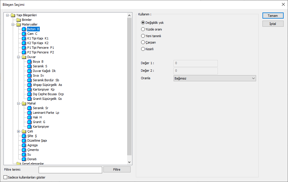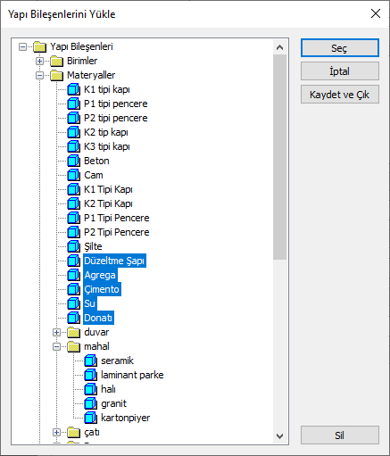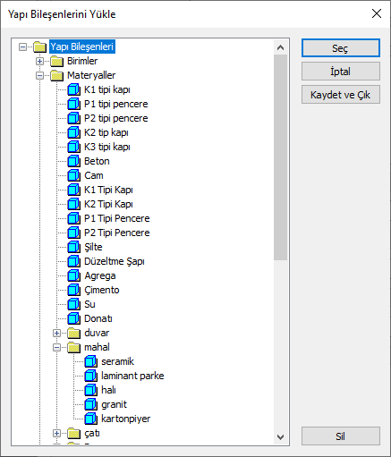 Seç butonuna tıkladığınızda seçilen yapı bileşenleri projenize yüklenecektir.