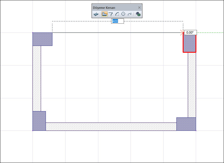 Yukarıda yer alan görselde yer alan iki kolon arasına döşeme kenarı çizmek için: