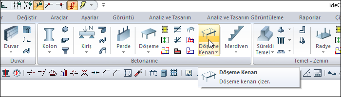 Döşeme Kenarı komutu ile betonarme tasarıma ait döşemelerin kiriş ve perdelerle tanımlanmayan sınırları tanımlanır. Betonarme döşemelerin kenarları kiriş, kolon ya da perdelerle çevrilidir. Bazı durumlarda (balkonlar, merdiven sahanlıkları vs.) döşemelerin bazı kenarları bu elemanlarla kapatılmaz, boştadır. Bu alanlara döşeme tanımlayabilmek için döşeme sınırı, döşeme kenarı ile tanımlanmalıdır.