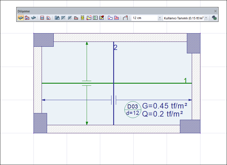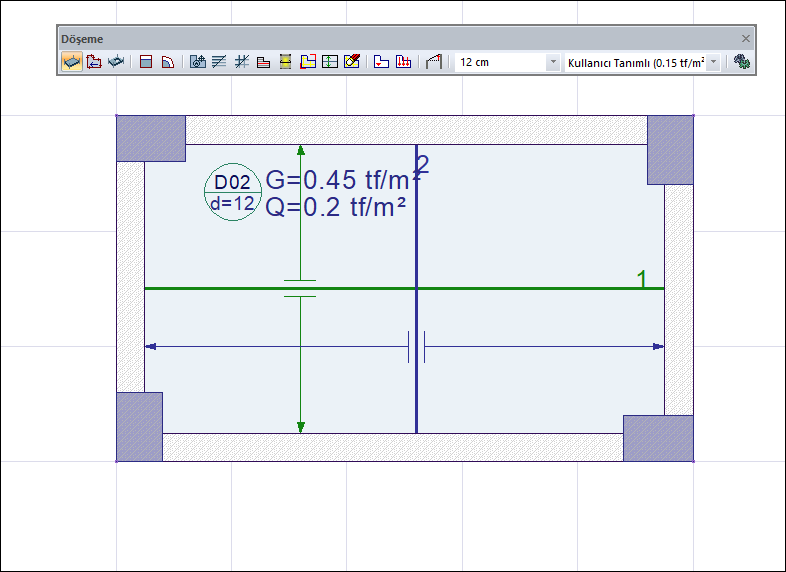 Ctrl tuşuna basılarak döşeme oluşturulması ve döşeme yazsının istenilen yere yerleştirilmesi ![]() |