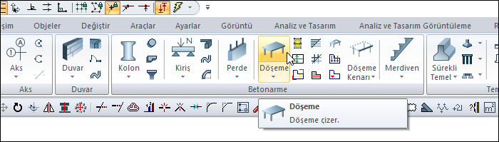 Ribbon menüde Betonarme Sekmesi Betonarme başlığı altından ulaşabilirsiniz.