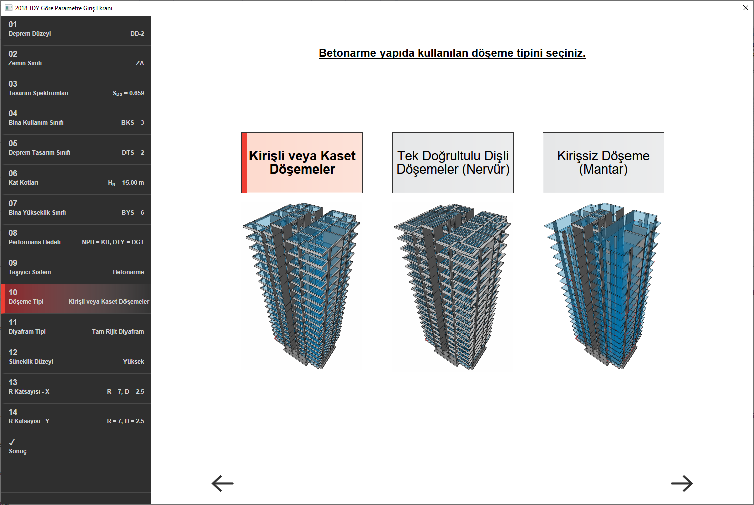 Modellemesini yaptığınız yapıya uygun döşeme tipi seçilir.