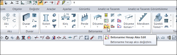 Betonarme Hesap Aksı Edit Komutunun Yeri