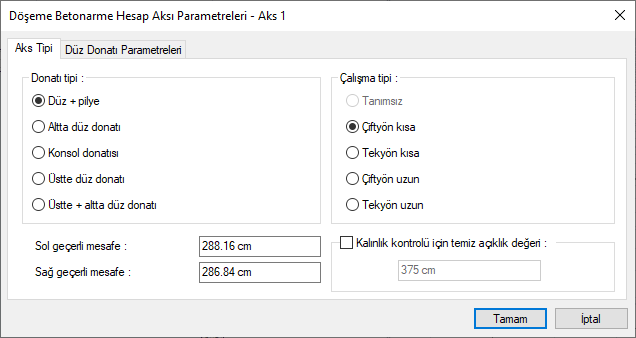 - Döşeme Betonarme Hesap Aksı Parametreleri diyaloğu açılacaktır.