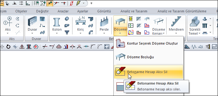 Betonarme Hesap Aksı Sil Komutunun Yeri