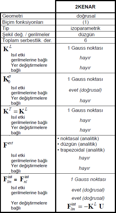 Bu elemanlar düzgün kesite sahiptir (değişkenlik yoktur ancak kesit bir elemandan diğerine farklı olabilir). İkinci dereceden çubuk eleman (3KENAR) bulunmamaktadır.