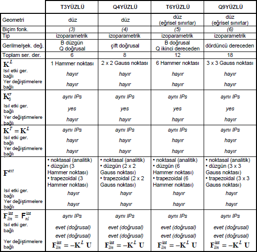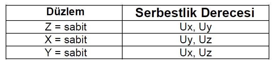 Bu elemanların her noktasında iki serbestlik derecesi bulunmaktadır (düzlemde 2 yer değiştirme).