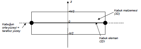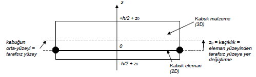 z = 0 yüzeyi sonlu elemanlar yüzeyi ile tanımlanmaktadır. Membran-eğilme eşleştirmesine olanak sunan