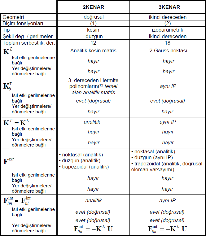 7 Büyük-şekil değiştirme/büyük-yer değiştirme teorisine dayanan geometrik rijitlik matrisi hariç.