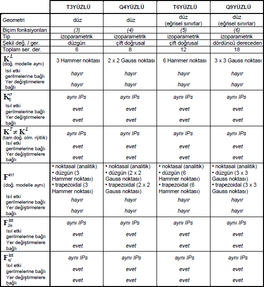Doğrusal elemanlar ile aynıdır ancak küçük şekil değiştirme tensörü ε yerine Green-Lagrange şekil