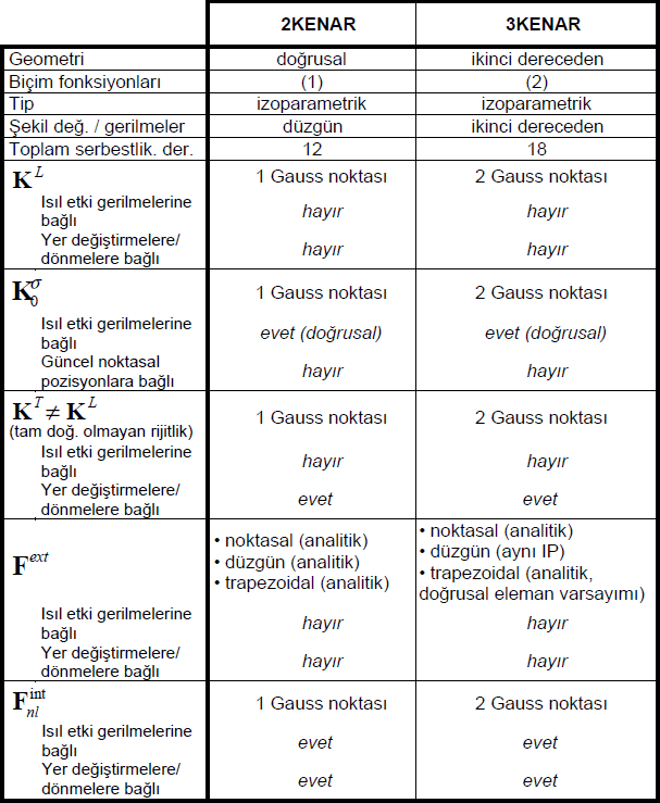 Doğrusal elemanlar için olan özelliklerle, küçük şekil değiştirme tensörü olan ε 'nin, Green-Lagrange şekil değiştirme tensörü olan E ile ve Cauchy gerilme tensörü olan σ 'nın, PK2 gerilme tensörü olan S ile değiştirilmesi şartıyla aynıdır.