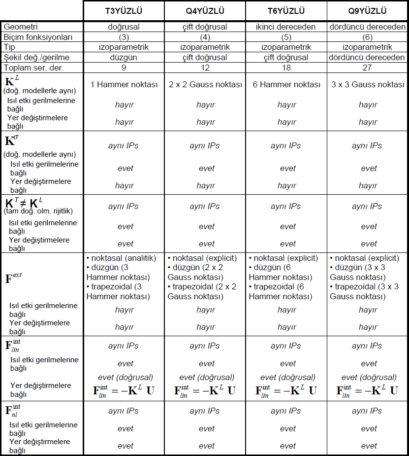 Doğrusal elemanlar ile aynıdır ancak küçük şekil değiştirme tensörü ε yerine Green-Lagrange şekil