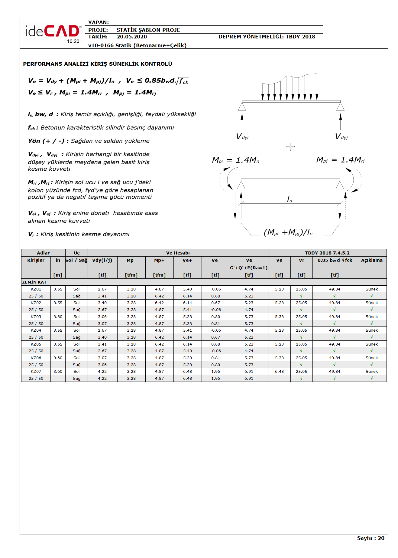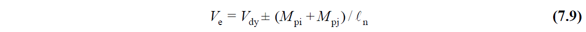 Kolon, kiriş ve perdelerin sünek eleman olarak sınıflandırılabilmesi için eğilme kapasitesi ile uyumlu olarak hesaplanan kesme kuvveti Ve 'nin Denk.(7.10) 'da verilen sınırları sağlaması gerekir. Ve değeri kolon,kiriş ve perdelerde bilgi düzeyi ile uyumlu olacak şekilde mevcut malzeme dayanımı değerleri kullanılarak hesaplanmaktadır.