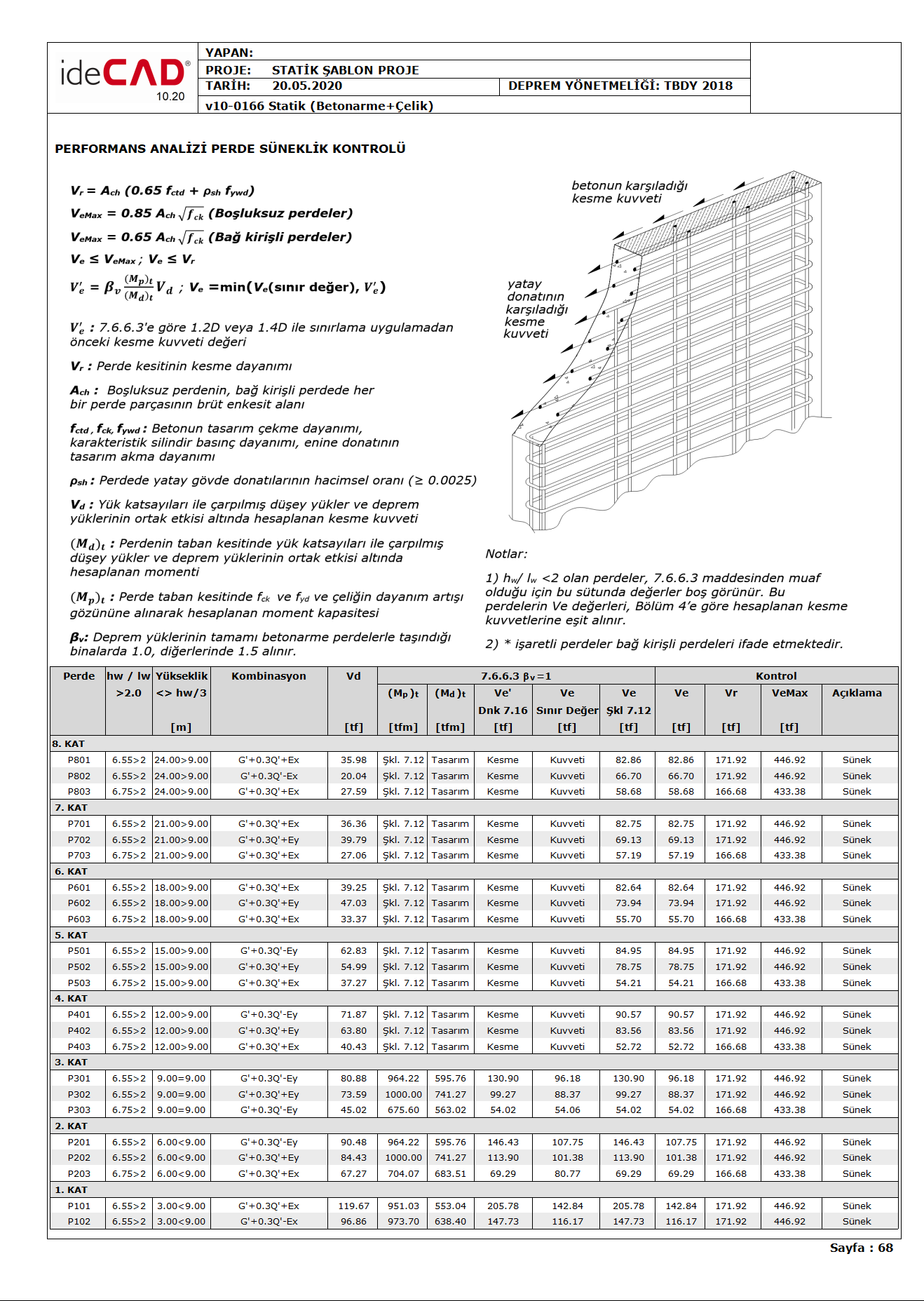 Aşağıdaki resimlerde Mevcut yapıların ŞGDT yaklaşımı doğrultusunda doğrulsa deprem hesabı ile değerlendirilmesindeki kolon, kiriş ve perde süneklik kontrolleri gösterilmektedir.