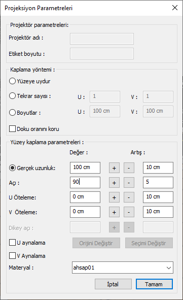 Projeksiyon parametreleri diyaloğu açılacaktır. Açıya 90 değerini girip tamam butonuna tıklayın.