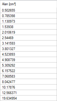 Alan ![]() Donatı tiplerinin alan değeri listelenmiştir. |
