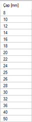 Çap ![]() Donatı tiplerinin çap değeri listelenmişti. |