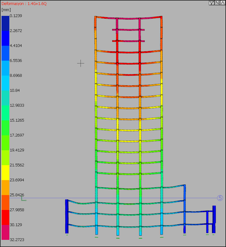 Analitik model görümünde, deformasyon modundaki düşey çerçeve görünümü: