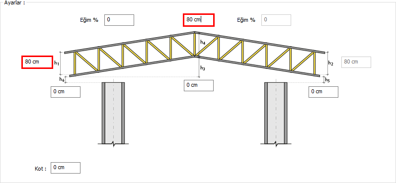 Makas ayarları yükseklik sekmesinde h1 ve h4 değeri için 80 cm girilmesi ![]() |