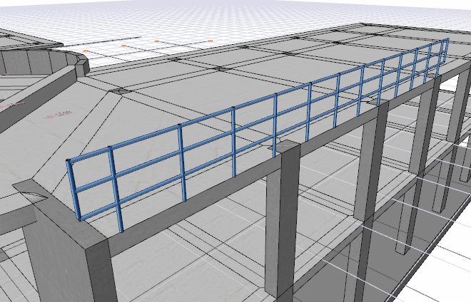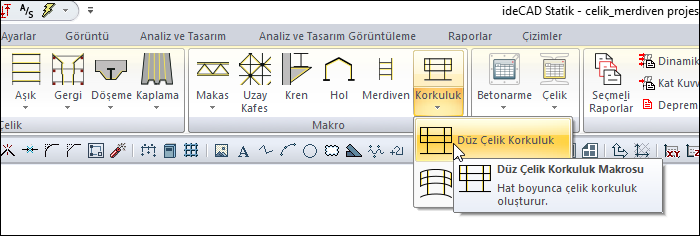 Düz Çelik Korkuluk Makrosu komutuyla çelik kirişlere ihtiyaç duymadan çelik korkuluklar oluşturulur.