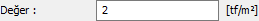 | Değer  Yükün çalışan birimdeki değerini girin. Mevcut yükün özelliklerine bakıyorsanız, o yük değerini görürsünüz. Duruma göre değiştirebilirsiniz. |