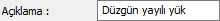 | Açıklama  Mevcut yükün özelliklerine bakıyorsanız, o yükün açıklaması gösterilir. Duruma göre değiştirebilirsiniz. Yeni bir yük tanımlıyorsanız, tanımlayacağınız yükün açıklamasını yazın. |