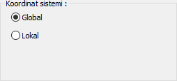 | Koordinat sistemi  Girilen yük değerlerinin eleman lokal eksenlerine göre mi verildiğini yoksa global eksenlere göre mi verildiğini belirtin. |