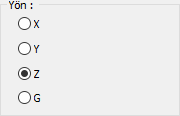 Z ekseninde yukarıya doğru artı(+) yöndür ve diğer eksenlerinin yönleri sağ el kuralına göre belirlenir.