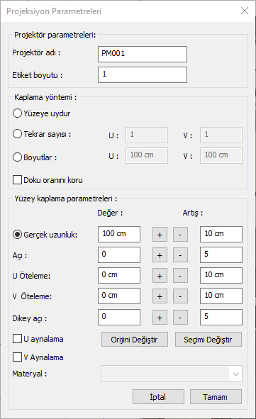Doku oranını koru ![]() İşaretlenirse tekrar sayısı ve boyutlar satırlarından sadece U kutusuna değer girilerek doku düzenlenir. |