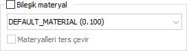 Bileşik materyal ![]() Bileşik materyal ile duvarın farklı malzeme görünümünde çizilmesine olanak tanır. İşaretleyerek “Bileşik Materyal” editöründe tanımlanmış materyallerden birini aşağıdaki listeden seçebilirsiniz. Seçilen bileşik materyal duvarın plandaki görünümünü değiştirir. Bütün materyalleri ters çeviri işaretleyerek duvarda kullanılan materyaller ters çevirebilirsiniz. |