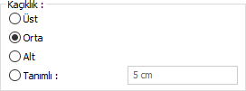 Kaçıklık ![]() Duvarın tanımlanacağı referans noktasını belirleyen seçenektir. Duvarın alt, orta ya da üst noktası referans olarak kullanılabileceği gibi tanımlı seçeneği ile duvar üst kenarına göre girilen mesafe de kullanılabilir. Girilen mesafe duvar kalınlığından fazla olamaz. |