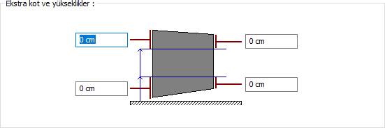 Ekstra kot ve yükseklikler ![]() Duvar şeklinin dört köşesinde bulunan kutucuklara değerler girilerek duvar uçları yükseltilip alçaltılabilir. |