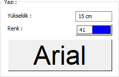 Yazı ![]() Duvar adı yazısının yüksekliği girilir. Duvar adı yazısının rengi ayarlanır. Renk kutucuğu tıklandığında açılan pencereden uygun renk seçilir. Bu parametrenin hemen altındaki buton tıklandığında “Yazı Tipi Ayarları” diyaloğu ekrana gelir. Buradan bilgi yazısının yazı tipi ayarlanabilir. |