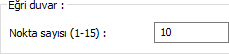 Eğri duvar ![]() Eğrisel ve dairesel duvar çizilirken kullanılan bir parametredir. Bu sayı büyüdükçe eğrisel ve dairesel duvarlar daha hassas (daha eğrisel) çizilirler. Maksimum 15 girilebilir. |