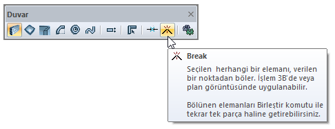 Duvar toolbarından Böl ikonuna tıklayın.