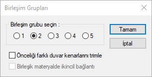 Birleşik materyalde ikincil bağlantı ![]() Birleşik materyale sahip duvar varsa aktif hale gelir. |