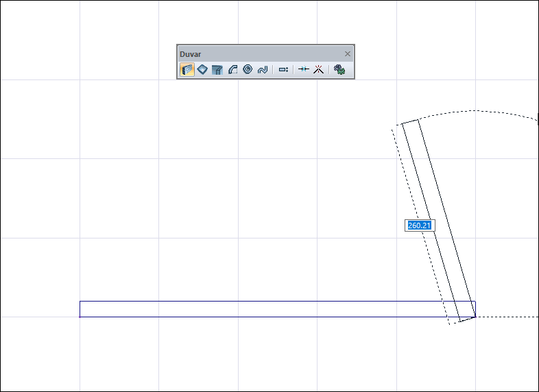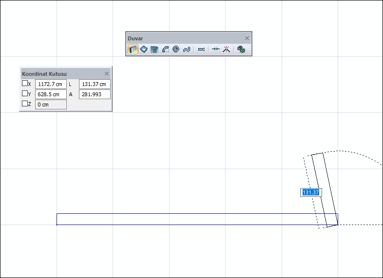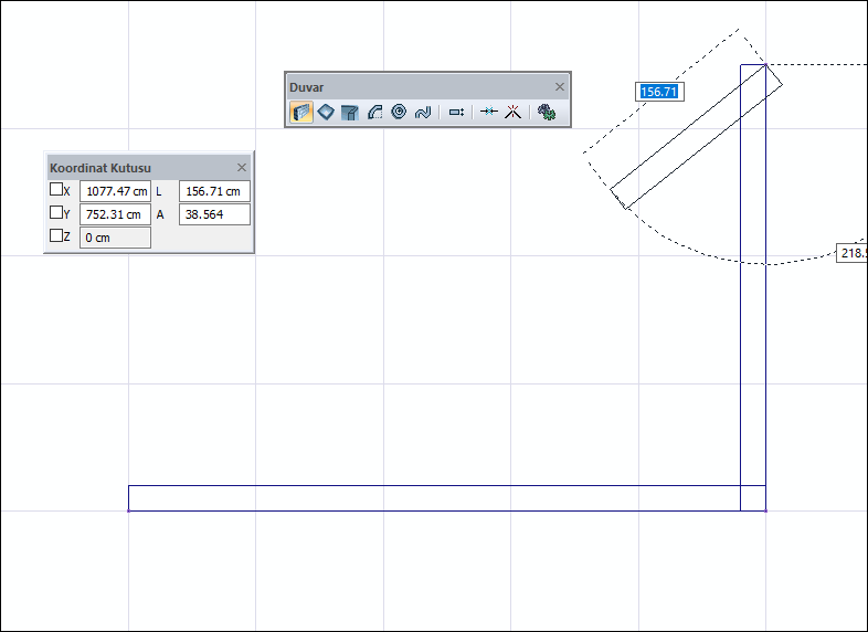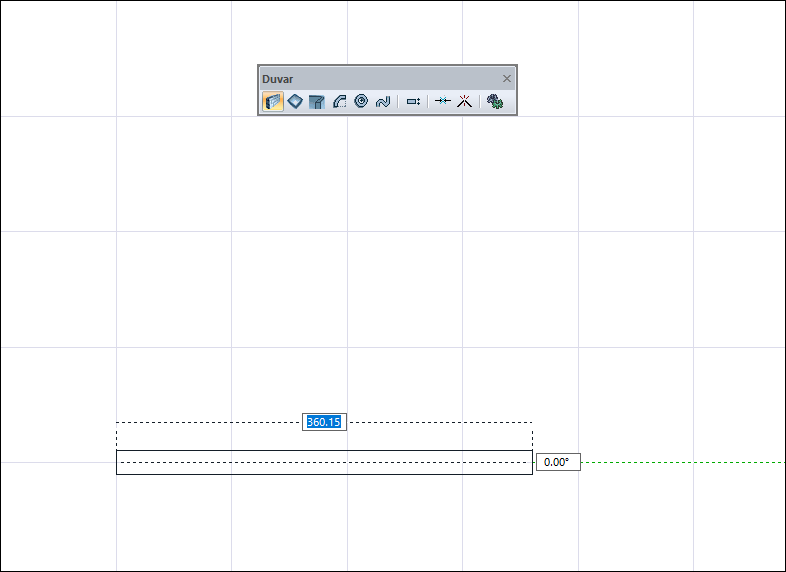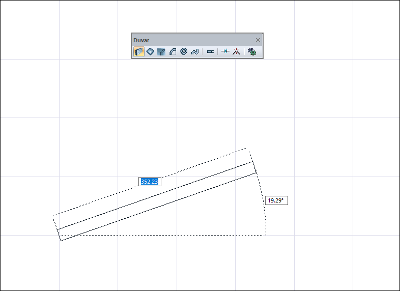 Çizim alanında girdiğiniz açı doğrultusunda ve uzunluğunda duvar öngrüntüsü oluşacaktır.