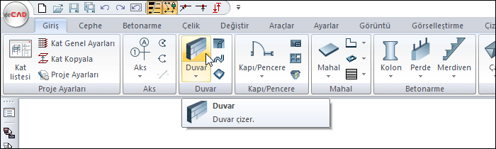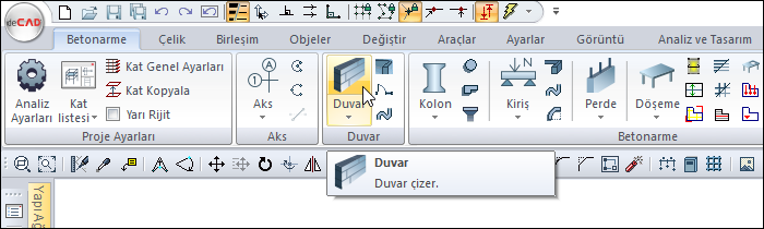 Ribbon menü Betonarme sekmesi Duvar başlığı altından ulaşabilirsiniz.