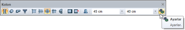 Kolon toolbarından Ayarlar ikonuna tıklayarak Eğiklik özelliğine ulaşabilirsiniz.