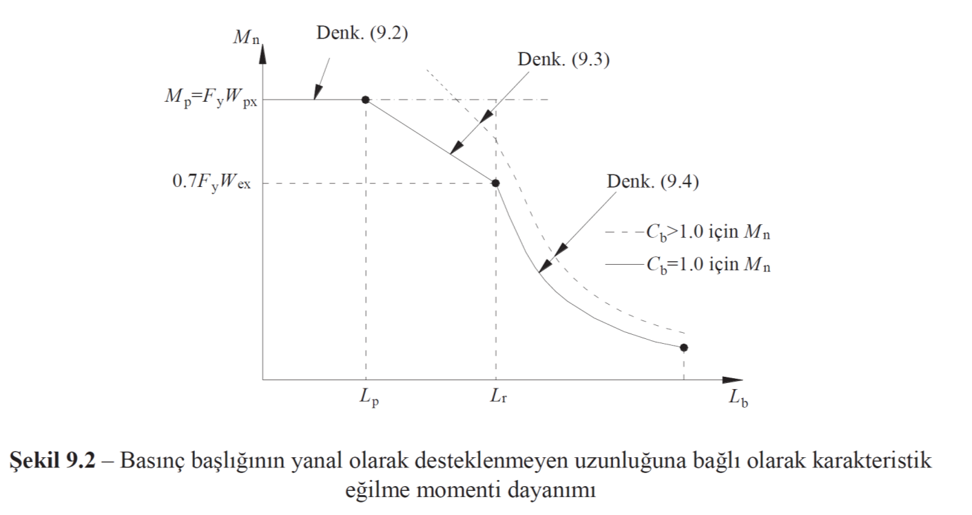 (c) Lb > Lr olması durumunda karakteristik eğilme momenti dayanımı, Mn, Denk.(9.4) ile belirlenecektir.