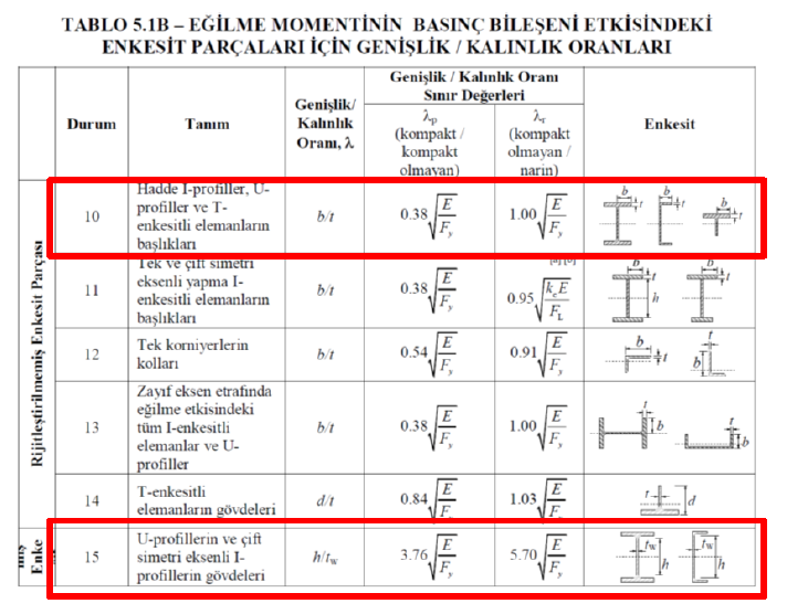 Yerel burkulma durumuna göre λp değerini aşmadığından enkesit kompakt olarak değerlendirilir.