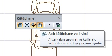 Kütüphaneyi yerleştirmeden önce kütüphane toolbarından “Açılı kütüphane yerleşimi” seçeneğini işaretleyin.