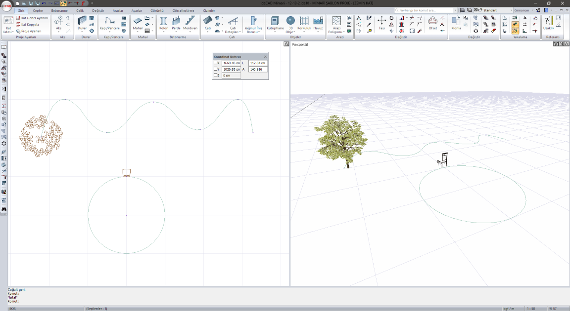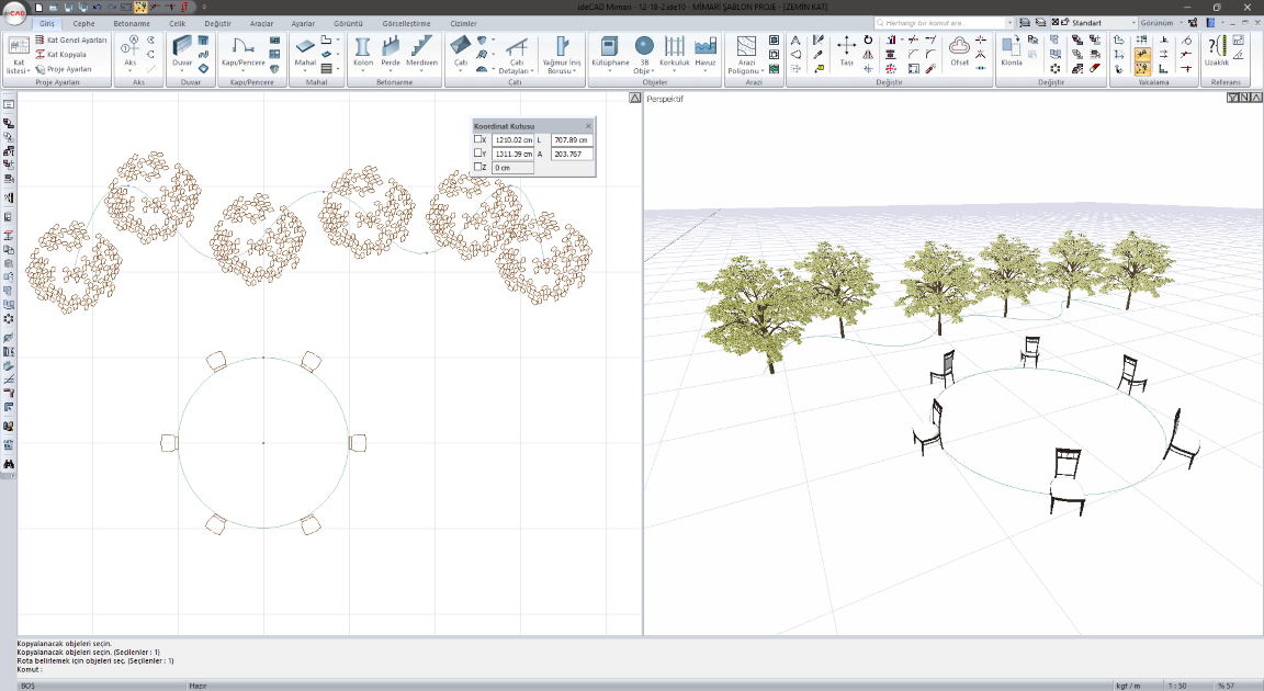 Çizim alanında ikinci bir noktayı sol tuş ile tıklayarak taban yönü belirleyin.