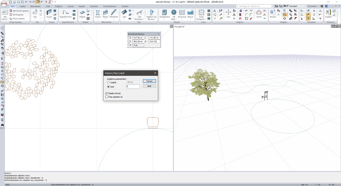 Bu diyalogda gerekli ayarları yapın ve Tamam butonunu tıklayın. Objeler verilen parametrelere ve seçilen hatta göre çoğaltılacaktır.