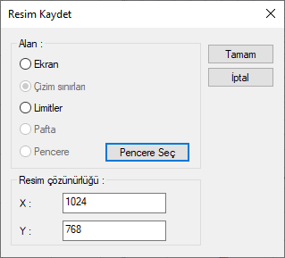Pencere ![]() Pencere Seç butonu ile belirlenebilen alanın kaydedilmesini sağlar. |