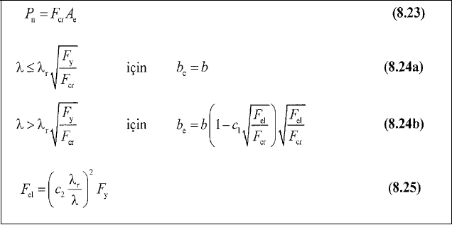 Fe1 : Denklem 8.25 ile hesaplanan yerel elastik burkulma gerilmesi