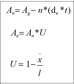 Çekme elemanlarında kırılma sınır durumu için karakteristik çekme kuvveti dayanımı, Tn, etkin net enkesit alanı kullanılarak denklem 7.3 ile hesaplanır.