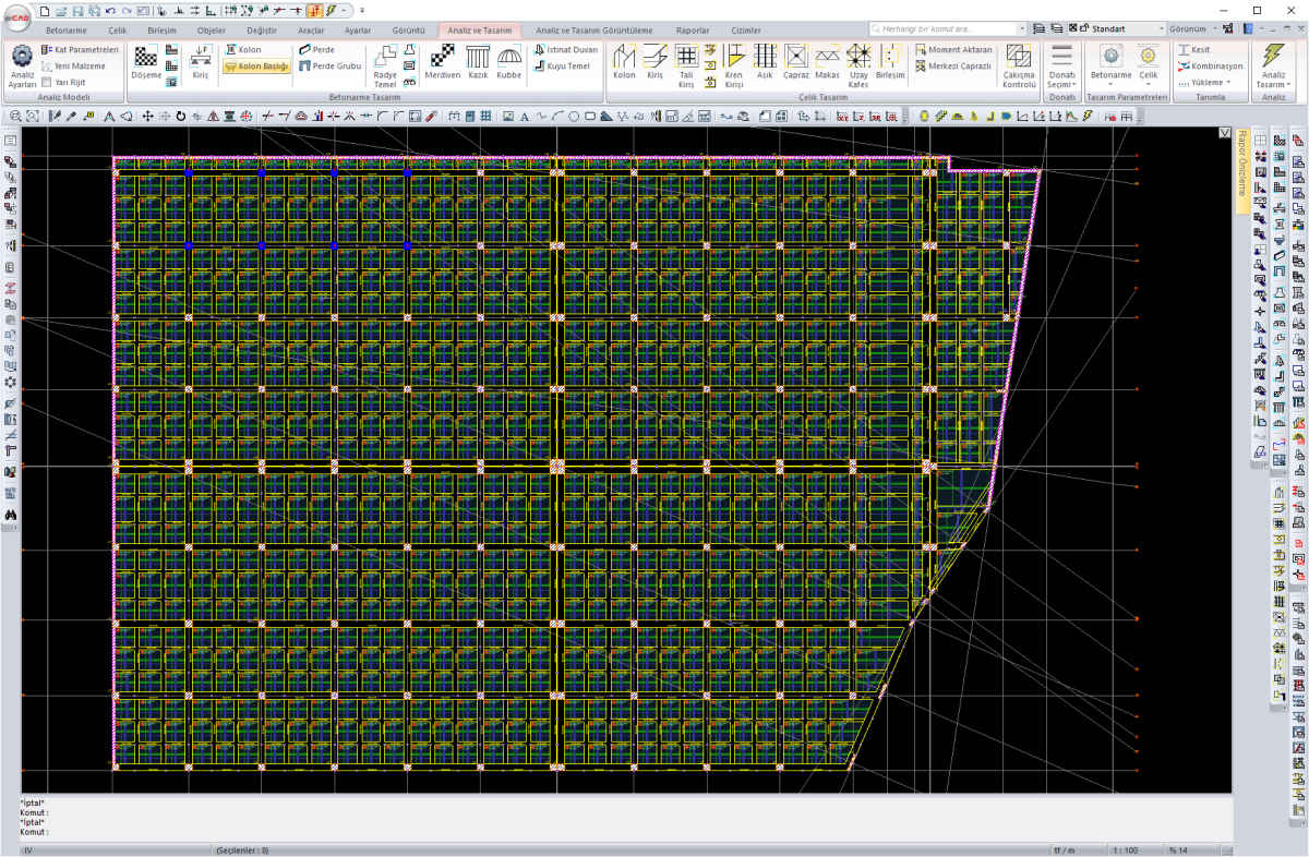 Analiz+Tasarım yapıldıktan sonra plan görünüşünde seçilen bir elemanın betonarme tasarım sonuçları diyaloğu, “Ctrl + Q” tuşlarına basılarak açılır. Eleman tasarım sonuçları diyaloğunda donatı miktarı, tasarım oranı, iç kuvvetler ve tasarım kuvvetleri sonuçları bulunur.