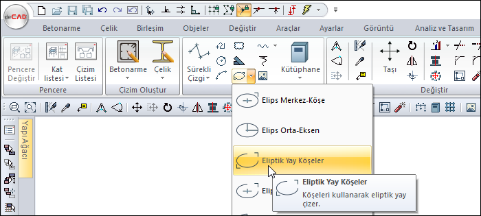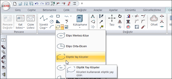 Ribbon menüde Eliptik Yay-Köşeler ikonunu tıklayın.